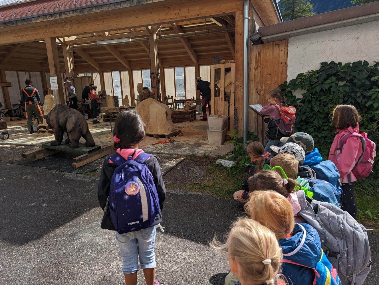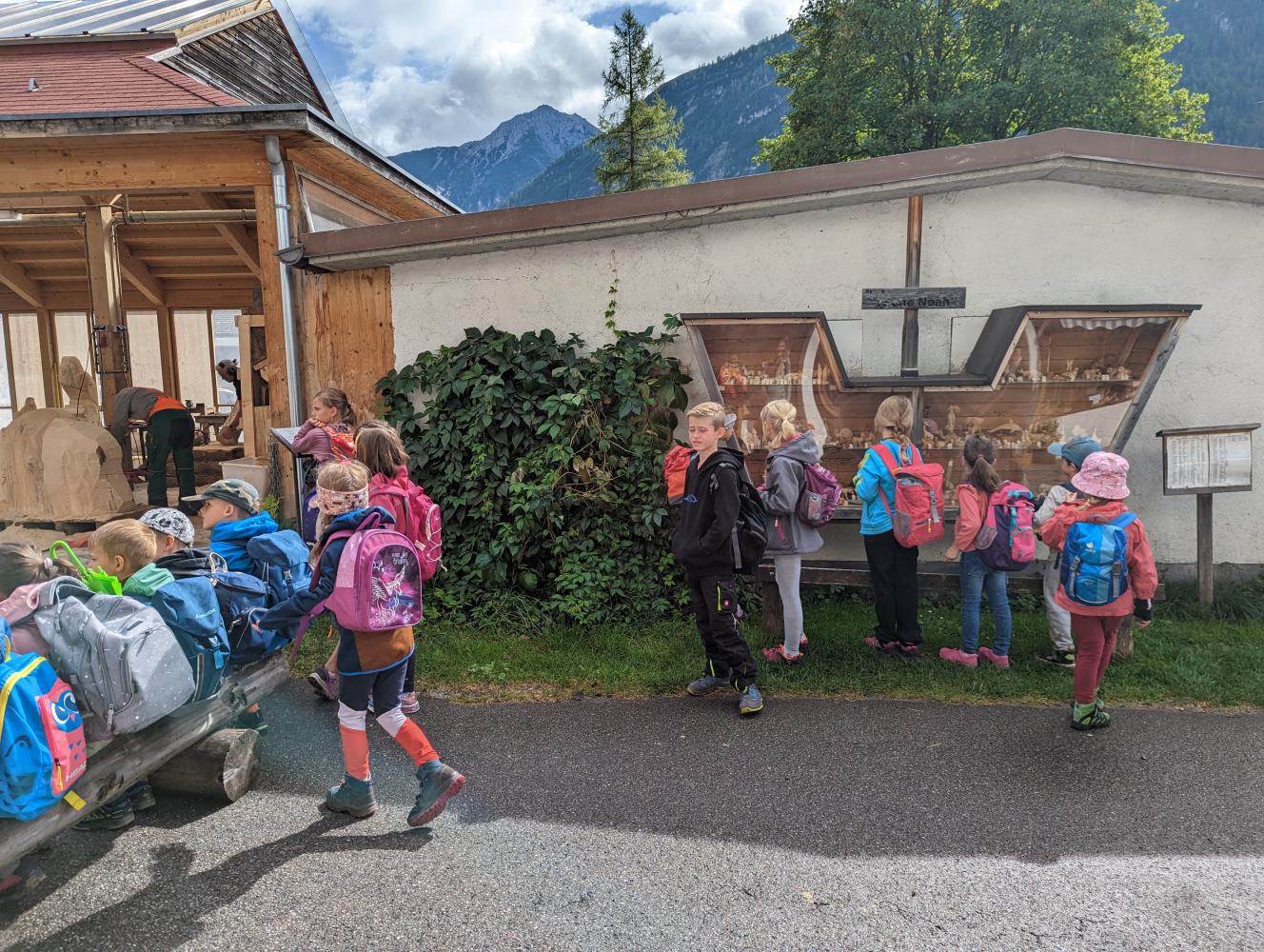 Am 19.9. fuhren wir mit dem Bus nach Elbigenalp. Dort sind wir dann weiter zur Gibleralm gewandert und haben die Zeit am Spielplatz genutzt. Nach einer kraftspendenden Jause, ging es wieder talabwärts. Direkt bei der Schnitzschule haben wir noch zuschauen können, wie tolle Kunstwerke mit der Motorsäge aus Holz geschnitten wurden.