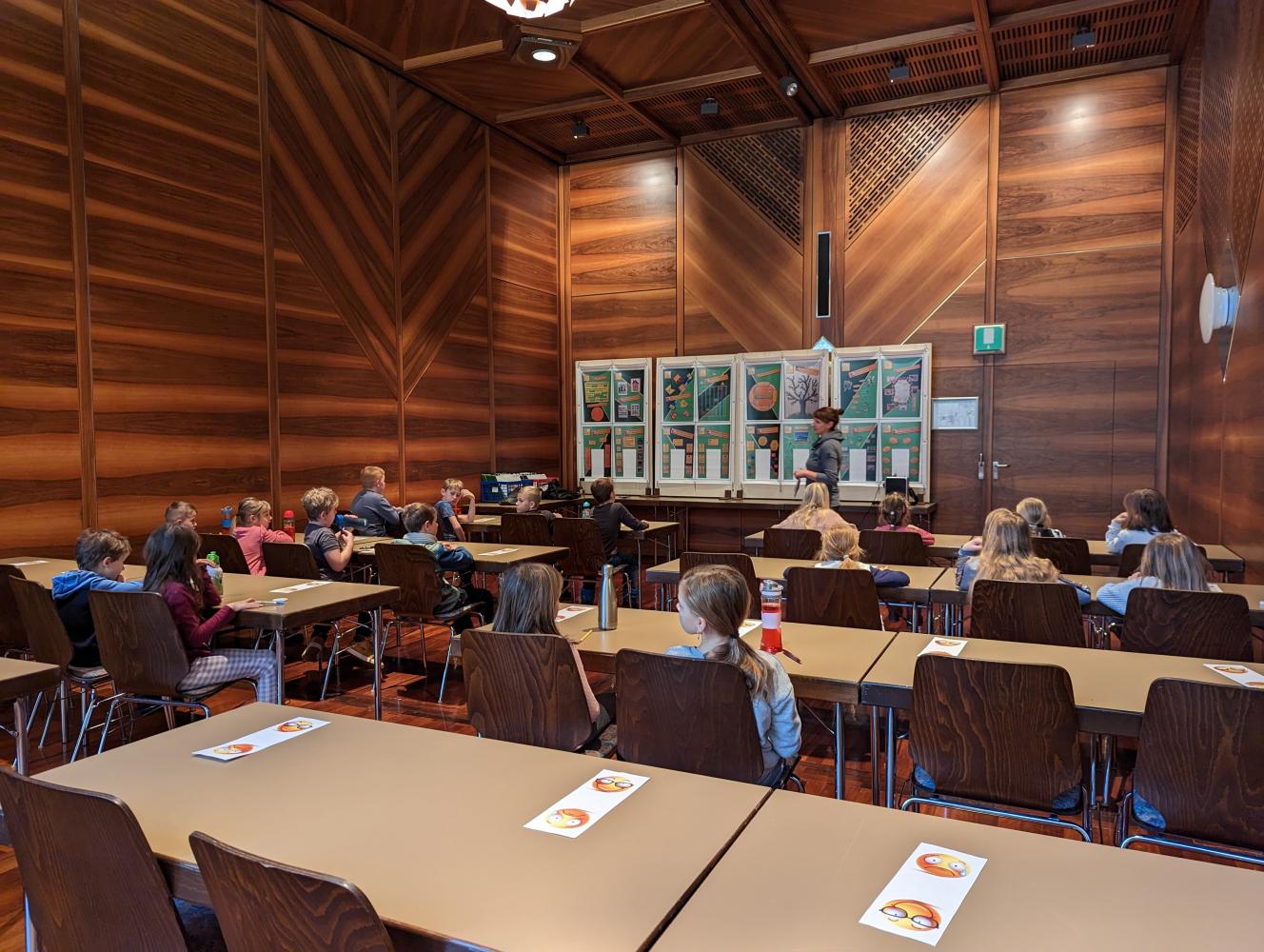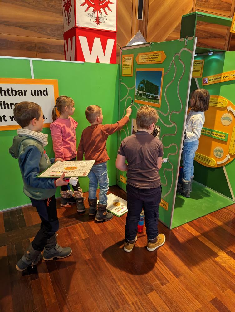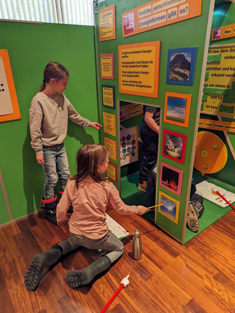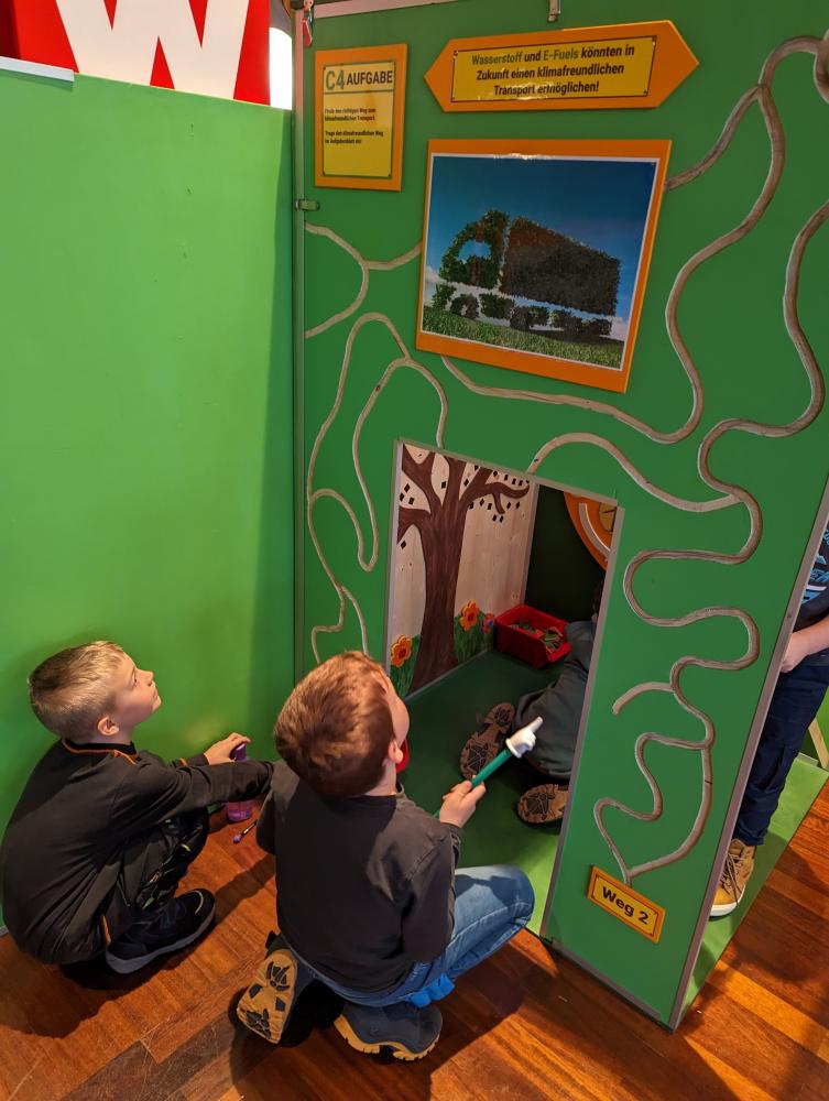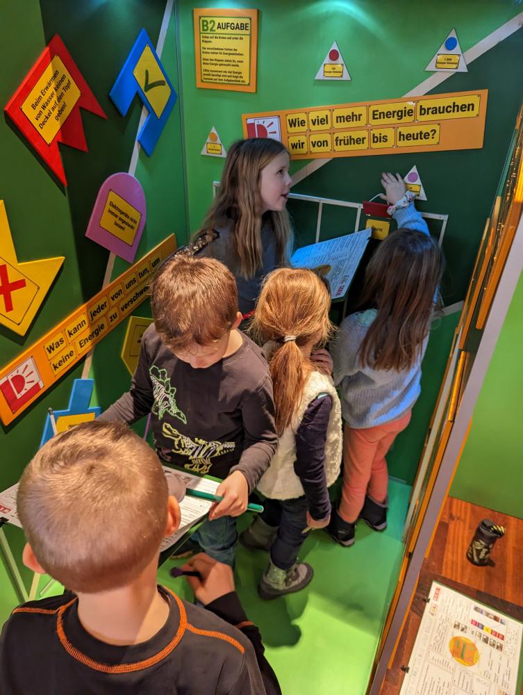 Zuerst hat uns Martina die Garderobe gezeigt. Danach sind wir in ein Besprechungszimmer geführt worden und haben allgemeine Begriffe und Fragen zur Energiegewinnung bei Menschen (Essen, Trinken, Heizung, Schlaf, etc.) und Energiequellen in der Natur besprochen. Im Mittelpunkt standen v.a. die erneuerbaren Energien (Sonne, Wasser und Wind). Auch die fossilen Brennstoffe und die Auswirkungen bei der Verwendung dieser wurde den Kindern anschaulich vermittelt. Die E-Fuels wurden den Kindern als klimaneutrale Kraftstoffe vorgestellt. Nach einer kurzen Geschichte wurde die Kinder zu einem Stationsbetrieb geführt. Dort konnten sie spielerisch das gehörte noch einmal erarbeiten und erforschen. In einem abschließenden Gesprächskreis wurden die Ergebnisse des Stationsbetriebs besprochen.
